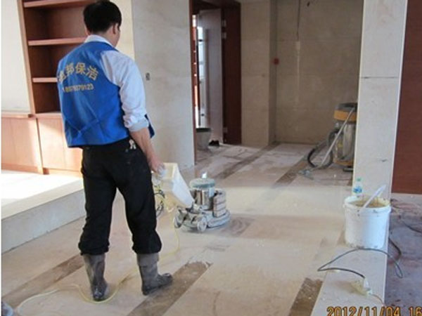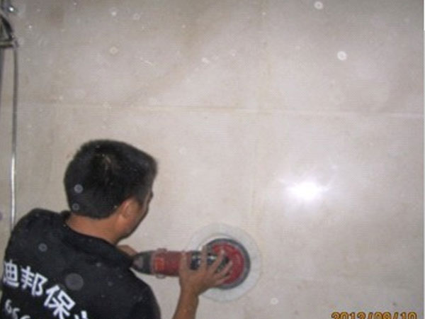 迪邦保潔公司保潔員正在為“暨陽福建商會”做地面、墻面石材翻新
